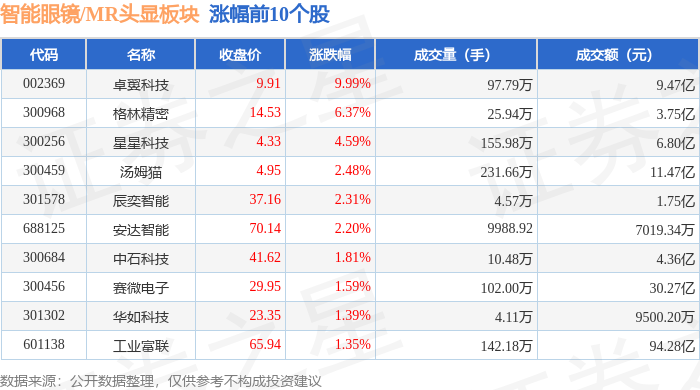 从资金流向上来看,当日智能眼镜/MR头显板块主力资金净流出23.44亿元,游资资金净流入5.81亿元,散户资金净流入17.63亿元。智能眼镜/MR头显板块个股资金流向见下表: