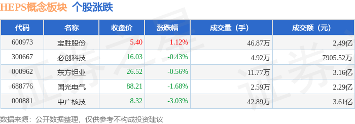 证券之星消息,11月20日HEPS概念板块较上一交易日下跌0.96%,中广核技领跌。当日上证指数报收于3931.05,下跌0.4%。深证成指报收于12980.82,下跌0.76%。HEPS概念板块个股涨跌见下表: