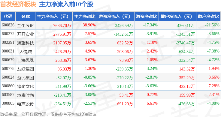 从资金流向上来看,当日首发经济板块主力资金净流入5967.36万元,游资资金净流出3494.35万元,散户资金净流出2473.01万元。首发经济板块个股资金流向见下表: