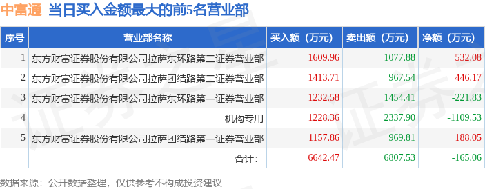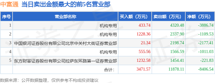 从龙虎榜公布的当日买卖数据来看,机构合计净卖出6007.3万元。北京中关村等知名游资榜上有名。(知名游资北京中关村一般指中国银河证券股份有限公司北京中关村大街证券营业部席位,根据市场资料整理,仅供参考)