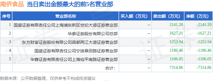 证券之星消息,沪深交易所2025年11月20日公布的交易公开信息显示,南侨食品(605339)因有价格涨跌幅限制的日价格振幅达到15%的前五只证券登上龙虎榜。此次是近5个交易日内第1次上榜。