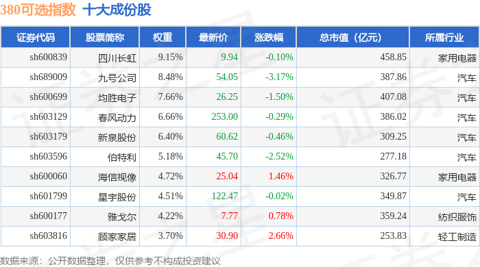 资金流向方面,380可选(000107)指数成份股当日主力资金净流出合计4.37亿元,游资资金净流出合计1097.05万元,散户资金净流入合计4.48亿元。成份股资金流向详情见下表: