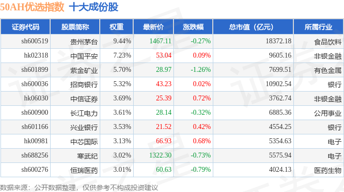 50AH优选(000170)指数十大成份股详情如下: