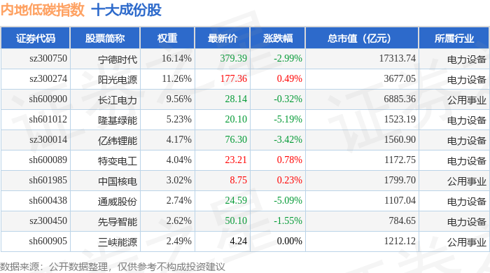 证券之星消息,11月20日,内地低碳(000977)指数报收于2147.3点,跌1.82%,成交875.76亿元,换手率1.14%。当日该指数成份股中,上涨的有9家,格林美以0.96%的涨幅领涨,下跌的有40家,大全能源以6.7%的跌幅领跌。