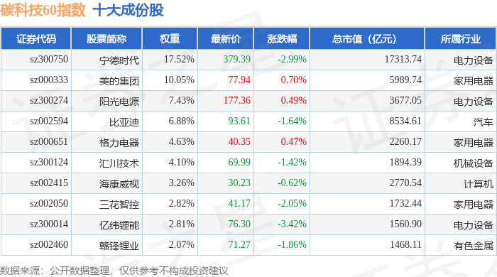碳科技60(399060)指数十大成份股详情如下: