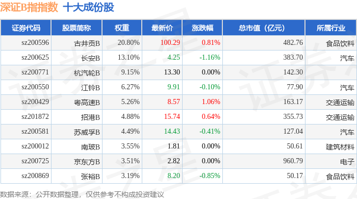 深证B指(399108)指数十大成份股详情如下: