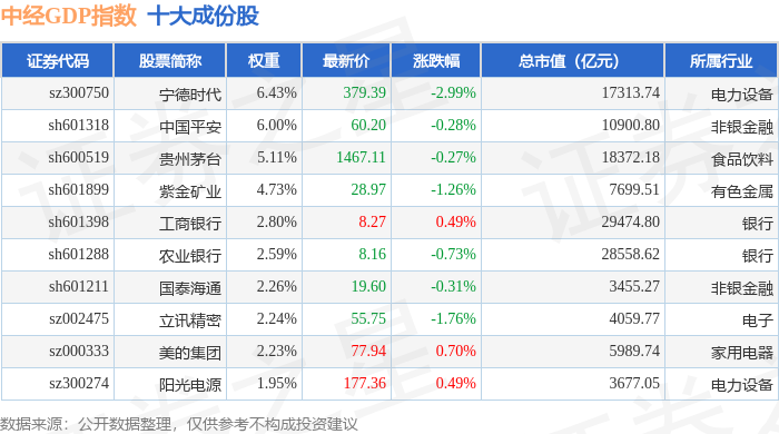 证券之星消息,11月20日,中经GDP(399399)指数报收于8144.15点,跌0.69%,成交2311.68亿元,换手率0.59%。当日该指数成份股中,上涨的有88家,北新建材以5.69%的涨幅领涨,下跌的有196家,太平鸟以5.61%的跌幅领跌。