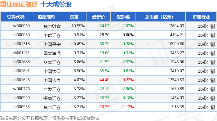 证券之星消息,11月20日,国证保证(399420)指数报收于1530.15点,跌0.44%,成交339.56亿元,换手率0.87%。当日该指数成份股中,上涨的有13家,首创证券以2.61%的涨幅领涨,下跌的有13家,广发证券以2.9%的跌幅领跌。