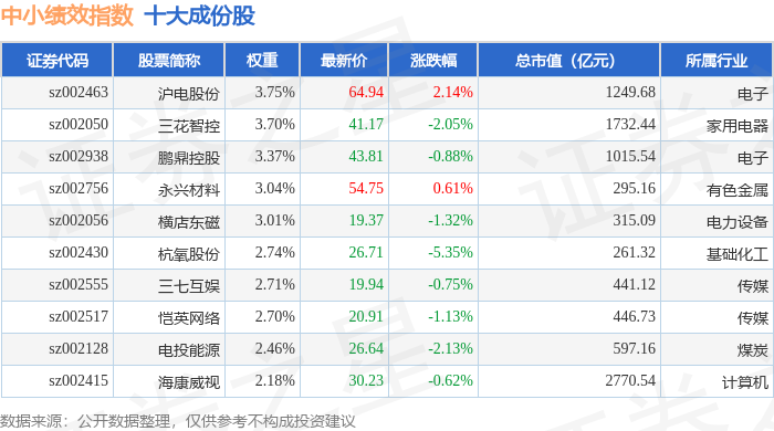 中小绩效(399658)指数十大成份股详情如下: