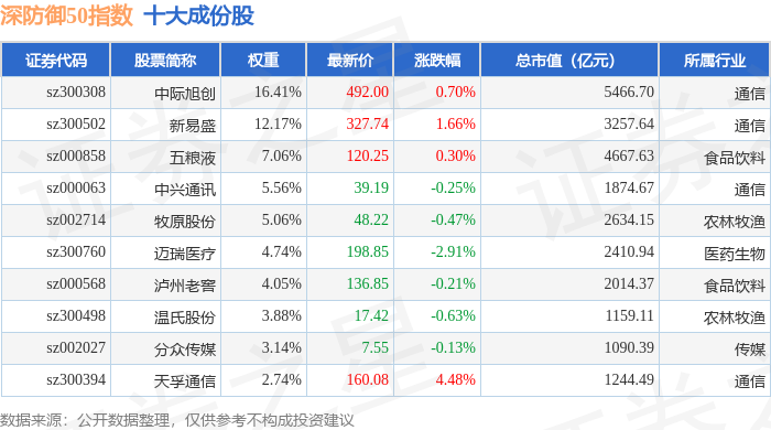 深防御50(399671)指数十大成份股详情如下: