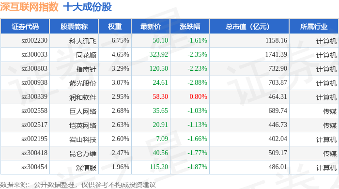 资金流向方面,深互联网(399675)指数成份股当日主力资金净流出合计24.57亿元,游资资金净流出合计5.12亿元,散户资金净流入合计29.69亿元。成份股资金流向详情见下表: