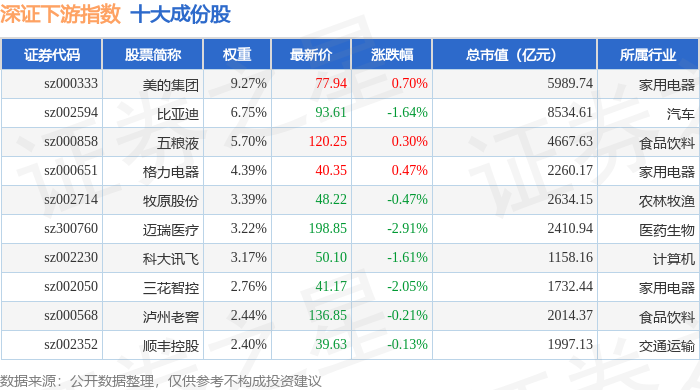 资金流向方面,深证下游(399706)指数成份股当日主力资金净流出合计44.65亿元,游资资金净流入合计5.27亿元,散户资金净流入合计39.38亿元。成份股资金流向详情见下表: