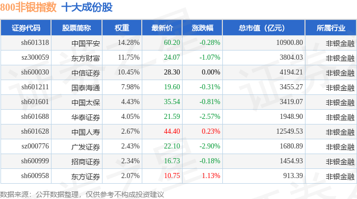 800非银(399966)指数十大成份股详情如下: