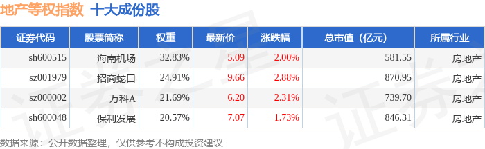 证券之星消息,11月20日,地产等权(399983)指数报收于2280.72点,涨2.23%,成交49.08亿元,换手率1.88%。当日该指数成份股中,上涨的有4家,招商蛇口以2.88%的涨幅领涨。