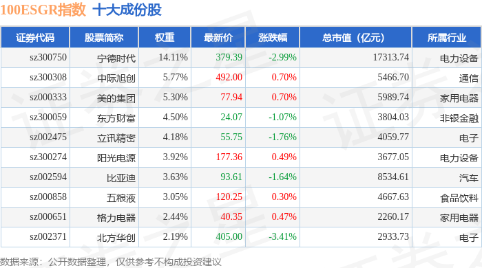 资金流向方面,100ESGR(470027)指数成份股当日主力资金净流出合计36.73亿元,游资资金净流出合计1090.55万元,散户资金净流入合计36.84亿元。成份股资金流向详情见下表: