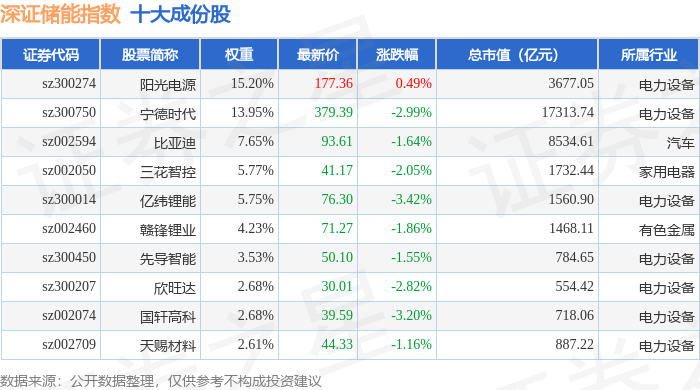 资金流向方面,深证储能(970036)指数成份股当日主力资金净流出合计60.07亿元,游资资金净流入合计3349.98万元,散户资金净流入合计59.74亿元。成份股资金流向详情见下表: