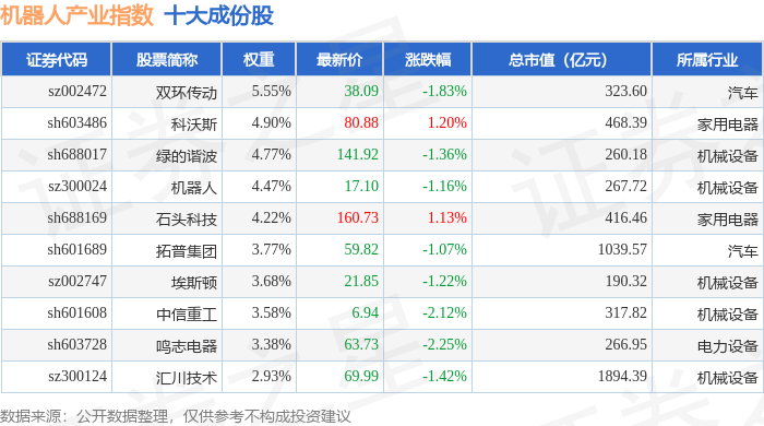 资金流向方面,机器人产业(980022)指数成份股当日主力资金净流出合计9.63亿元,游资资金净流入合计3569.06万元,散户资金净流入合计9.28亿元。成份股资金流向详情见下表: