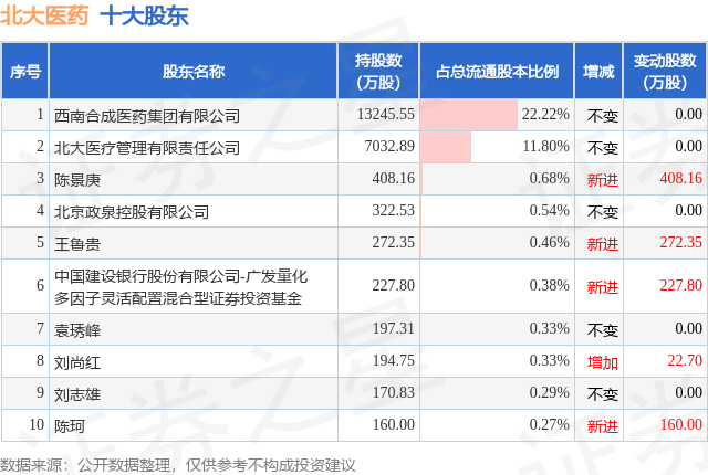根据北大医药2025年三季报公布的十大股东详情如下:
