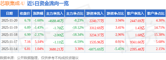 证券之星消息,截至2025年11月20日收盘,芯联集成(688469)报收于6.78元,下跌1.6%,换手率1.88%,成交量83.13万手,成交额5.69亿元。