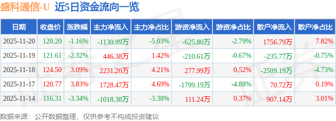 证券之星消息,截至2025年11月20日收盘,盛科通信(688702)报收于120.2元,下跌1.16%,换手率0.92%,成交量1.87万手,成交额2.25亿元。