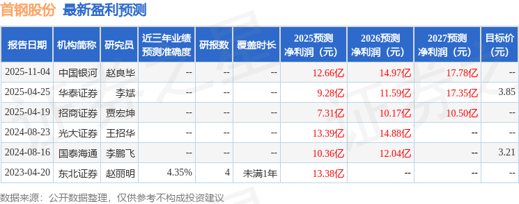 以下是详细的盈利预测信息: