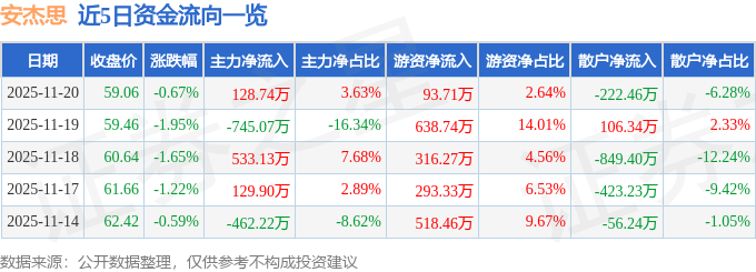 证券之星消息,截至2025年11月20日收盘,安杰思(688581)报收于59.06元,下跌0.67%,换手率1.44%,成交量5985.0手,成交额3544.66万元。
