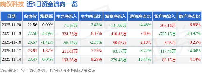 证券之星消息,截至2025年11月20日收盘,皖仪科技(688600)报收于22.56元,上涨0.0%,换手率0.96%,成交量1.29万手,成交额2935.97万元。