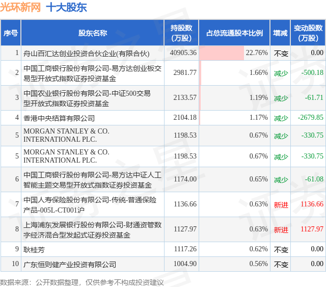 根据光环新网2025年三季报公布的十大股东详情如下: