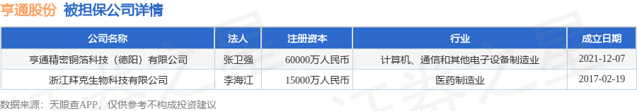 亨通股份11月19日披露2笔对外担保,被担保公司2家。对外担保明细如下表: