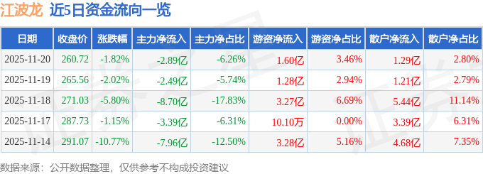 证券之星消息,截至2025年11月20日收盘,江波龙(301308)报收于260.72元,下跌1.82%,换手率6.34%,成交量17.41万手,成交额46.07亿元。