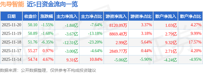 证券之星消息,截至2025年11月20日收盘,先导智能(300450)报收于50.1元,下跌1.55%,换手率3.04%,成交量47.45万手,成交额24.07亿元。