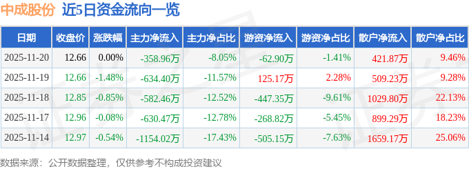 证券之星消息,截至2025年11月20日收盘,中成股份(000151)报收于12.66元,上涨0.0%,换手率1.14%,成交量3.52万手,成交额4459.2万元。