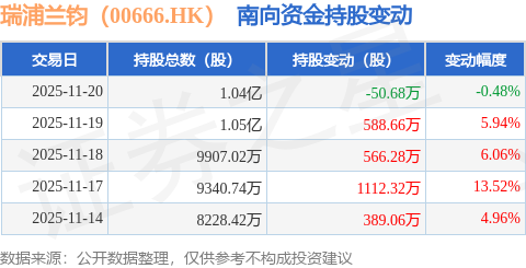 证券之星消息,11月20日南向资金减持50.68万股瑞浦兰钧(00666.HK)。近5个交易日中,获南向资金增持的有4天,累计净增持2605.64万股。近20个交易日中,获南向资金增持的有14天,累计净增持6018.5万股。截至目前,南向资金持有瑞浦兰钧(00666.HK)1.04亿股,占公司已发行普通股的11.16%。