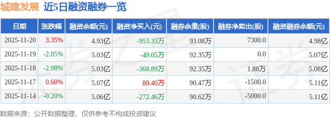 城建发展融资融券信息显示,融资方面,当日融资买入2422.79万元,融资偿还3376.12万元,融资净偿还953.33万元。融券方面,融券卖出8200.0股,融券偿还900.0股,融券余量93.08万股,融券余额459.82万元。融资融券余额4.98亿元。