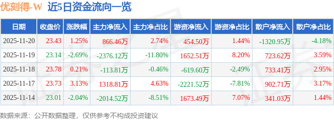 证券之星消息,截至2025年11月20日收盘,优刻得(688158)报收于23.43元,上涨1.25%,换手率3.32%,成交量13.48万手,成交额3.16亿元。