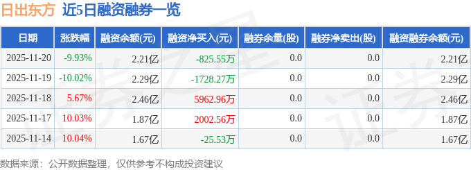 证券之星消息,截至2025年11月20日收盘,日出东方(603366)报收于10.43元,下跌9.93%,换手率13.4%,成交量108.91万手,成交额11.6亿元。