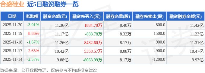 合盛硅业融资融券信息显示,融资方面,当日融资买入3.17亿元,融资偿还2.98亿元,融资净买入1884.7万元。融券方面,融券卖出1300.0股,融券偿还500.0股,融券余量8.4万股,融券余额528.7万元。融资融券余额11.42亿元。