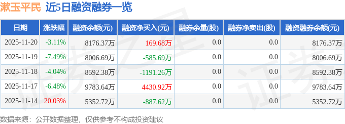 证券之星消息,截至2025年11月20日收盘,漱玉平民(301017)报收于13.4元,下跌3.11%,换手率7.41%,成交量18.02万手,成交额2.45亿元。