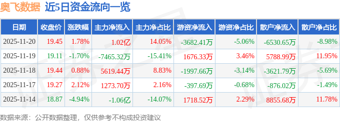 11月20日的资金流向数据方面,主力资金净流入1.02亿元,占总成交额14.05%,游资资金净流出3682.41万元,占总成交额5.06%,散户资金净流出6530.65万元,占总成交额8.98%。