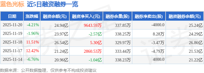蓝色光标融资融券信息显示,融资方面,当日融资买入8.11亿元,融资偿还7.15亿元,融资净买入9643.59万元。融券方面,融券卖出3900.0股,融券偿还7900.0股,融券余量337.85万股,融券余额3074.42万元。融资融券余额25.24亿元。