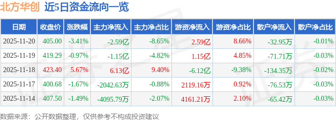 证券之星消息,截至2025年11月20日收盘,北方华创(002371)报收于405.0元,下跌3.41%,换手率1.01%,成交量7.31万手,成交额29.92亿元。