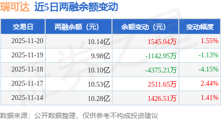 证券之星消息,11月20日,瑞可达(688800)融资买入1.08亿元,融资偿还9254.31万元,融资净买入1543.07万元,融资余额10.13亿元。