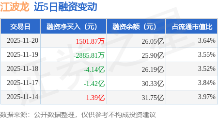 证券之星消息,11月20日,江波龙(301308)融资买入5.33亿元,融资偿还5.18亿元,融资净买入1501.87万元,融资余额26.05亿元,近20个交易日中有14个交易日出现融资净买入。