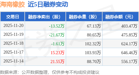 证券之星消息,11月20日,海南橡胶(601118)融资买入6071.32万元,融资偿还4981.73万元,融资净买入1089.59万元,融资余额8.81亿元,近20个交易日中有14个交易日出现融资净买入。
