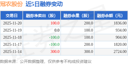 证券之星消息,11月20日,冠农股份(600251)融资买入2734.99万元,融资偿还2417.69万元,融资净买入317.31万元,融资余额4.14亿元,近20个交易日中有12个交易日出现融资净买入。