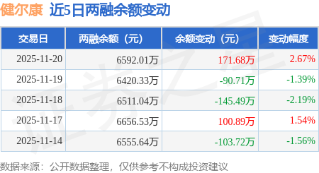 证券之星消息,11月20日,健尔康(603205)融资买入354.23万元,融资偿还182.55万元,融资净买入171.68万元,融资余额6591.73万元。