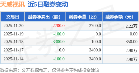 证券之星消息,11月20日,天威视讯(002238)融资买入620.42万元,融资偿还470.09万元,融资净买入150.32万元,融资余额1.12亿元,近3个交易日已连续净买入累计662.14万元。