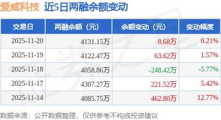 证券之星消息,11月20日,爱威科技(688067)融资买入211.45万元,融资偿还202.77万元,融资净买入8.68万元,融资余额4131.15万元,近20个交易日中有11个交易日出现融资净买入。