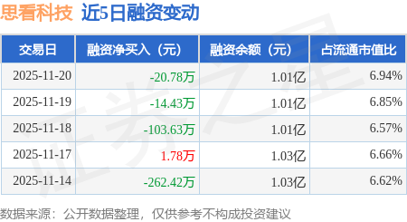 证券之星消息,11月20日,思看科技(688583)融资买入299.24万元,融资偿还320.02万元,融资净卖出20.78万元,融资余额1.01亿元。