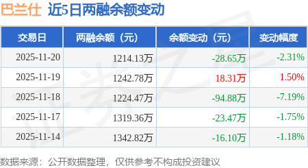 证券之星消息,11月20日,巴兰仕(920112)融资买入27.23万元,融资偿还55.88万元,融资净卖出28.65万元,融资余额1214.13万元。